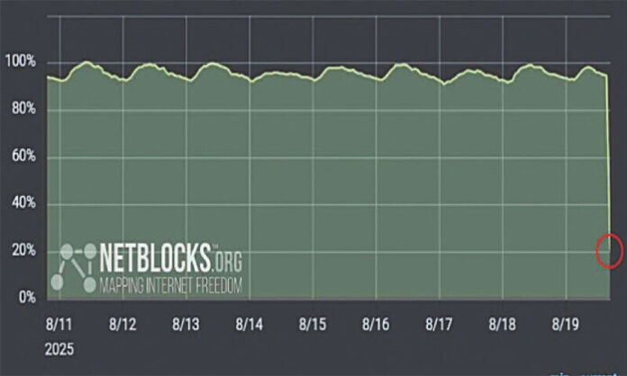گلوبل انٹرنیٹ واچ ڈاگ نیٹ بلاکس نے تصدیق کی کہ پاکستان بھر میں انٹرنیٹ کنیکٹیوٹی بری طرح متاثر ہوئی ہے، جس میں پی ٹی سی ایل کو شدید نقصان پہنچا اور ملک کی مجموعی کنیکٹیوٹی معمول کے مقابلے میں 20 فیصد کی سطح تک گر گئی۔