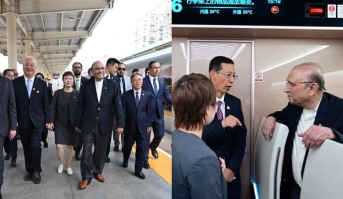 بیجنگ: صدر آصف علی زرداری دورہ چین پرہیں جہاں انہوں نے چین کی زلزلہ وارننگ سسٹم سے لیس ہائی اسپیڈ ٹرین پر سفر کیا۔