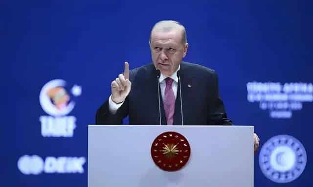صدر رجب طیب اردگان نے جمعہ کو استنبول میں پانچویں ترکی-افریقہ بزنس اور اقتصادی فورم سے خطاب کرتے ہوئے کہا حماس اور اسرائیل کے درمیان معاہدے کے لیے سخت محنت کی تاکہ غزہ میں امن قائم ہو سکے اور وہاں کے لوگ سکون کی زندگی گزار سکیں۔