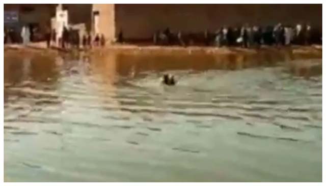 پی ڈی ایم اے کی ٹیم نے جوہڑ میں تلاش کے لیے بوٹ کی مدد بھی حاصل کی۔