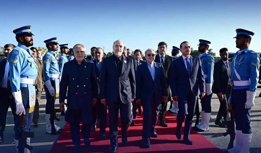 نائب وزیر اعظم و وزیر خارجہ  اسحاق ڈار،چیف آف آرمی اسٹاف و چیف آف ڈیفنس فورسز فیلڈ مارشل سید عاصم منیر اور قومی اسمبلی کے اسپیکر سردار ایاز صادق نے ایرانی وفد کو الوداع کہا۔